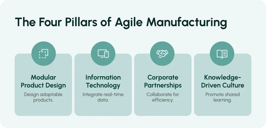 Now that we’ve explored the ways Agile Manufacturing varies from other common operational philosophies, let’s look at the key elements that define Agile Manufacturing.